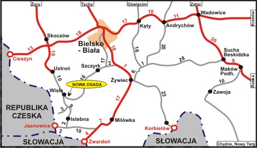 Komunikacja zbiorowa:Do Wisły PKS-em najłatwiej dostać się z Cieszyna, Bielska-Białej i Katowic. Realizowane są też pojedyncze kursy z pozostałych największych miast Polski. Dzięki prywatnym przewożnikom można łatwo dostać się do Ustronia i innych okolicznych miejscowości. Dodatkowo w Wiśle Głębcach kończy bieg linia kolejowa. Kursują tu pociągi przede wszystkim z Katowic. Współrzędne GPS Nowa Osada: 49 38' 11'' N, 18 53' 26'' E |